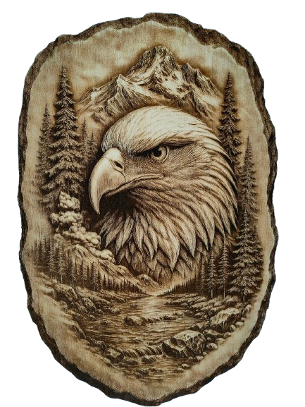 Obraz Głowa Orła w Górach wypalany w drewnie to nie tylko dekoracja – to symbol siły i wolności, który nada Twojemu wnętrzu wyjątkowego charakteru i ponadczasowego stylu.