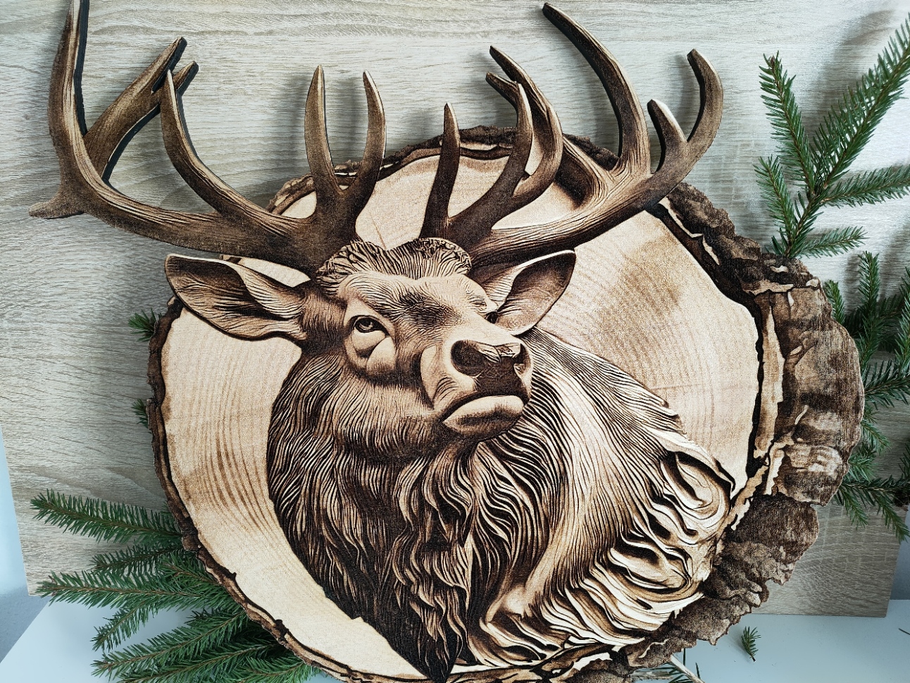 Jeleń – drewniana dekoracja na ścianę – wypalane w drewnie 3D