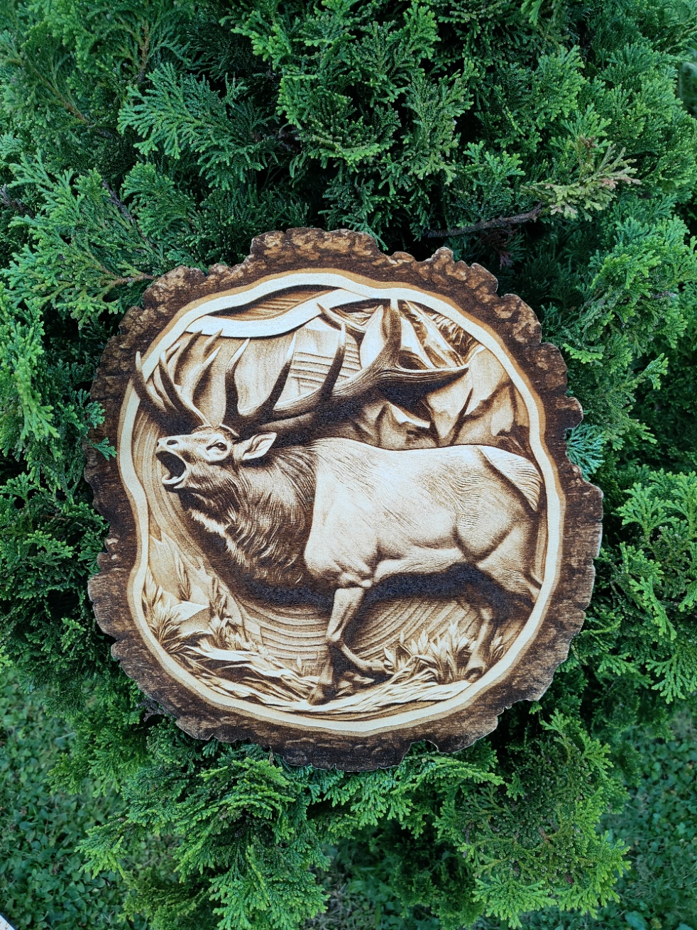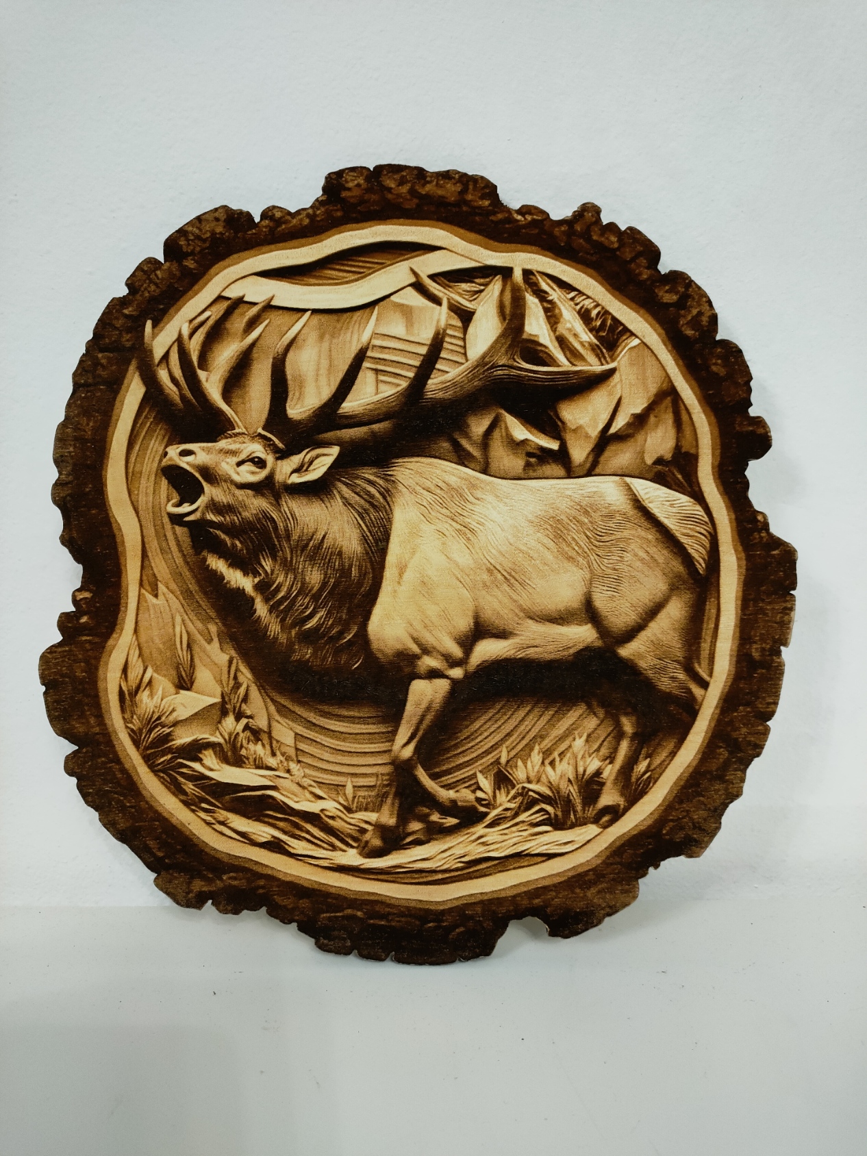 Jeleń grawerowany laserowo – Drewniana dekoracja na ścianę – wypalane w drewnie