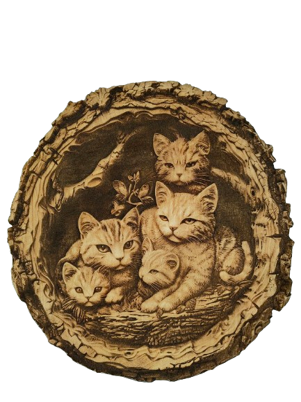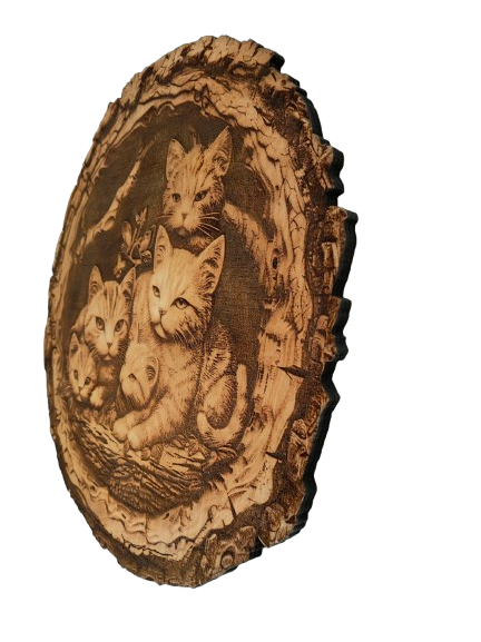Koty – obraz wypalany w drewnie – elegancka dekoracja z naturalnego drewna