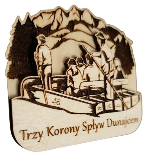 Magnes 3D Spływ Dunajcem – pamiątka z Pienin – drewniany grawerowany magnes