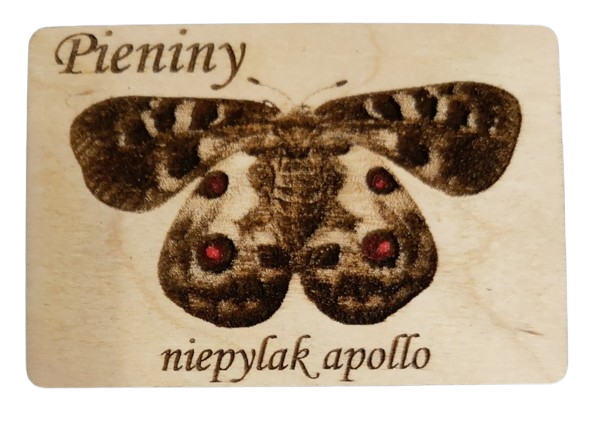 Drewniany magnes z grawerowanym niepylakiem apollo to wyjątkowa pamiątka z Pienin. Naturalna sklejka i precyzyjny grawer tworzą unikalny, trwały upominek dla miłośników przyrody i gór.
