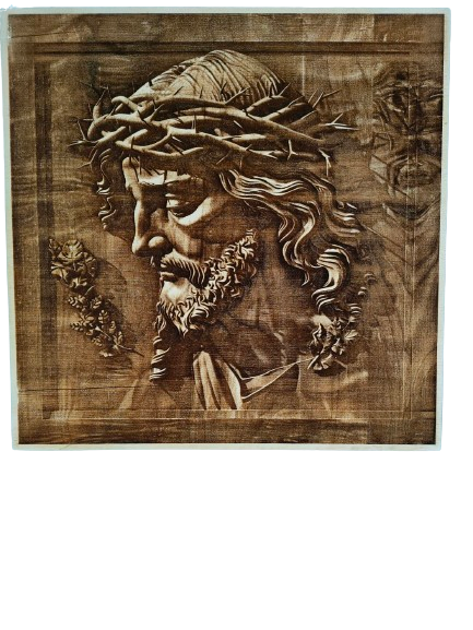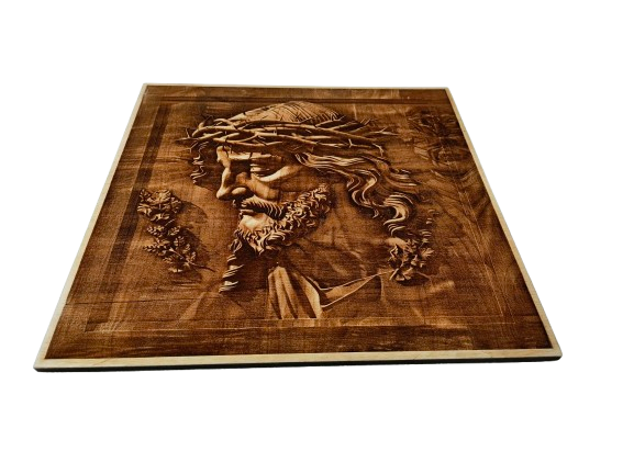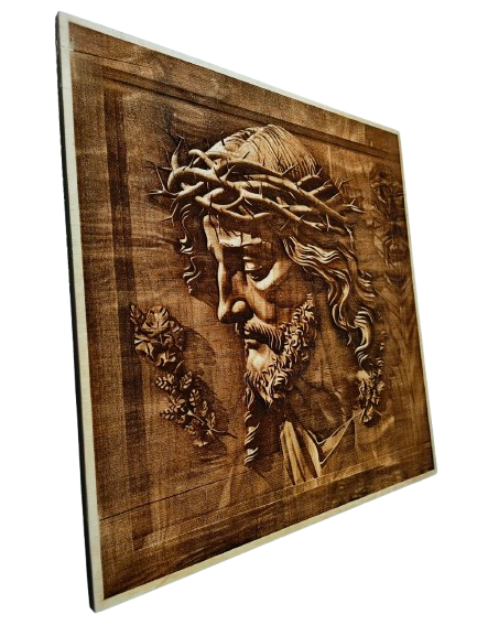 Jezus w koronie cierniowej – wypalany w drewnie – drewniana ozdoba ścienna