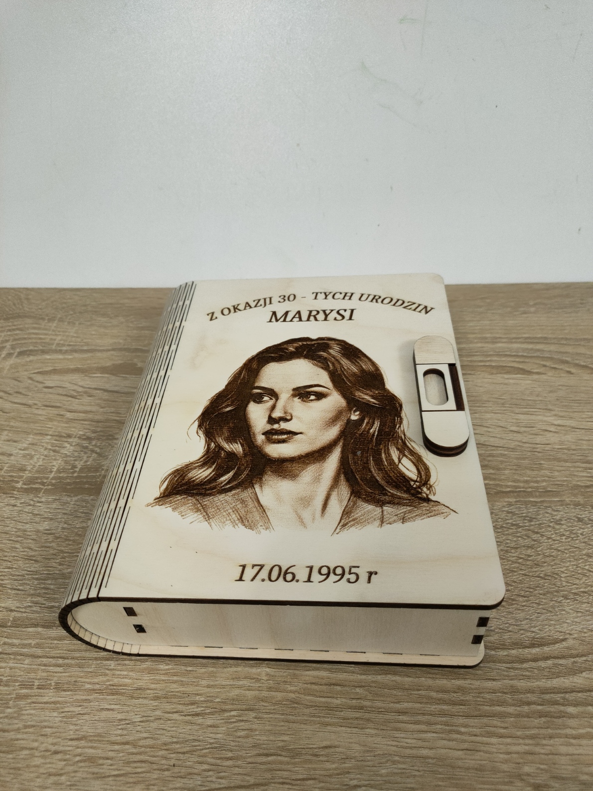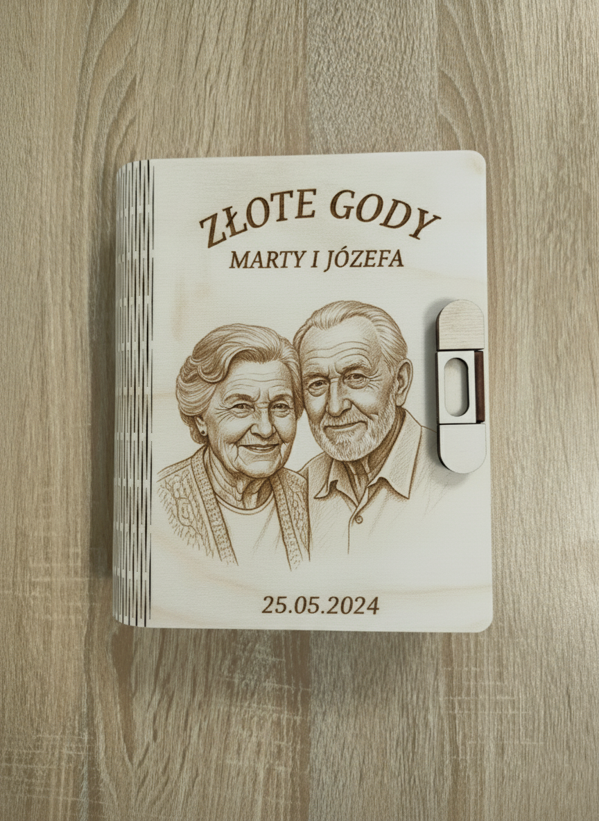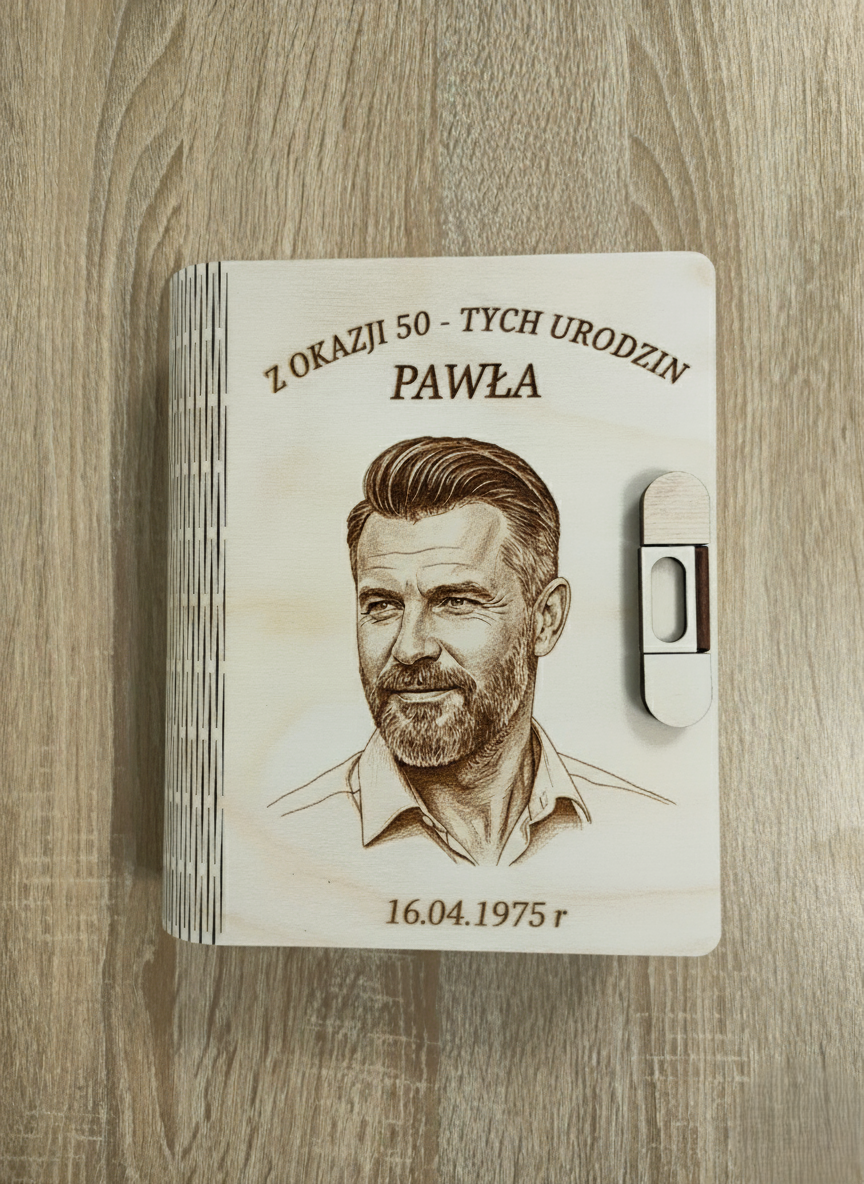 Ekskluzywna wypalana w drewnie książka z personalizowanym grawerem i portretem to niezwykły prezent, który zachwyci elegancją i indywidualnym charakterem. Ta wyjątkowa drewniana kasetka w formie książki idealnie sprawdzi się na urodziny, jubileusz, Złote Gody czy rocznicę ślubu.