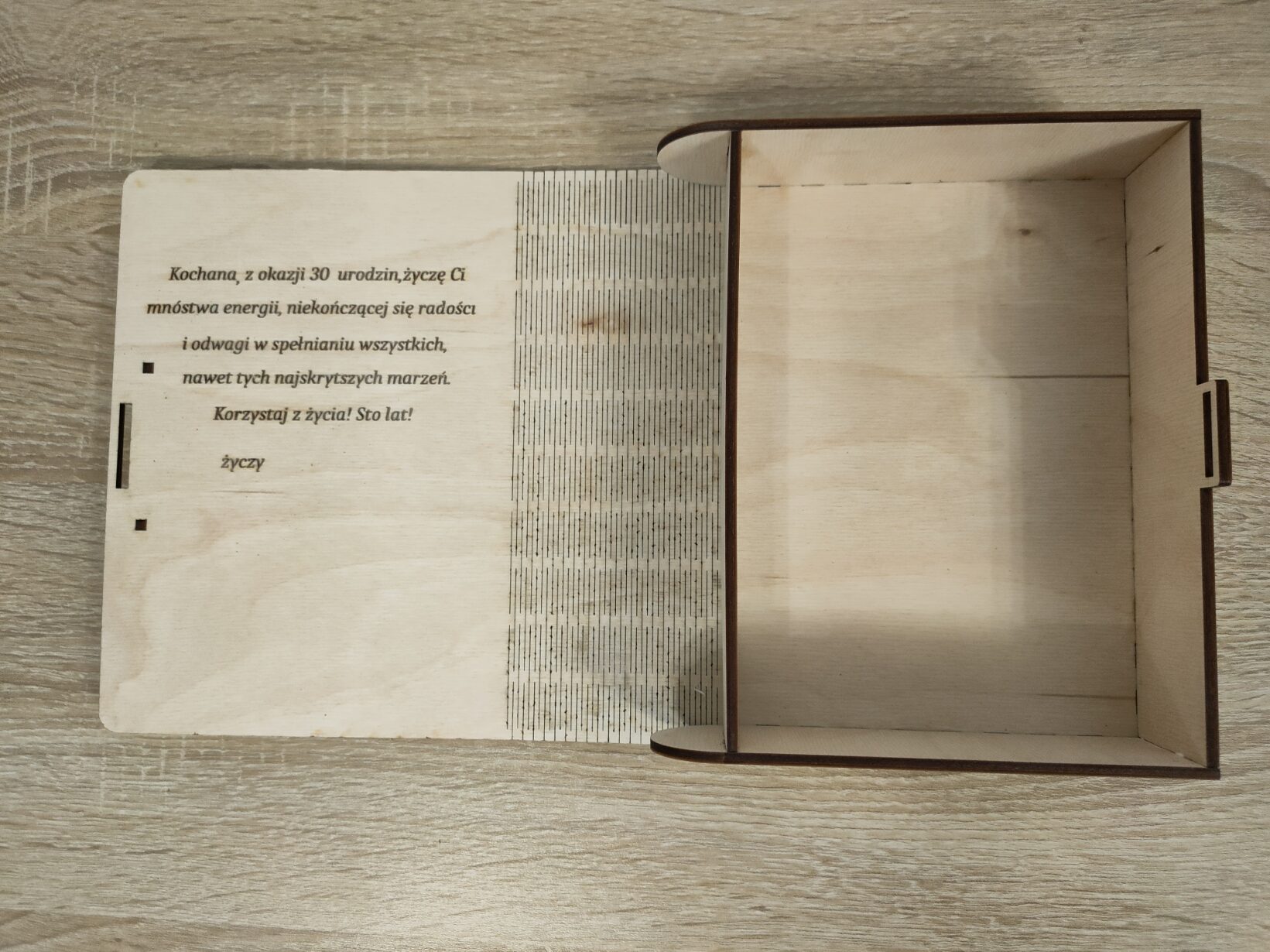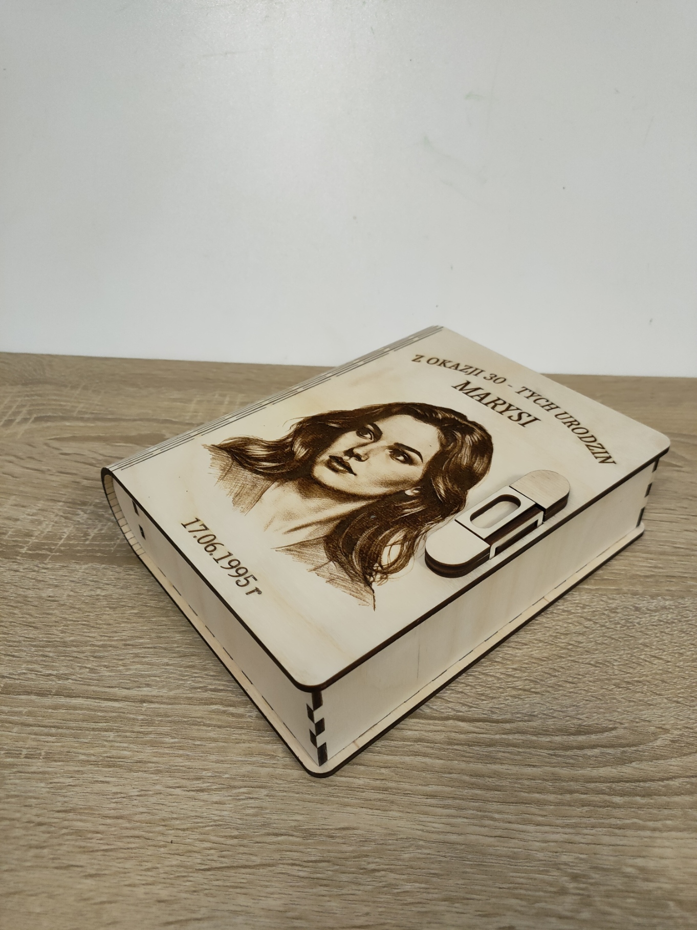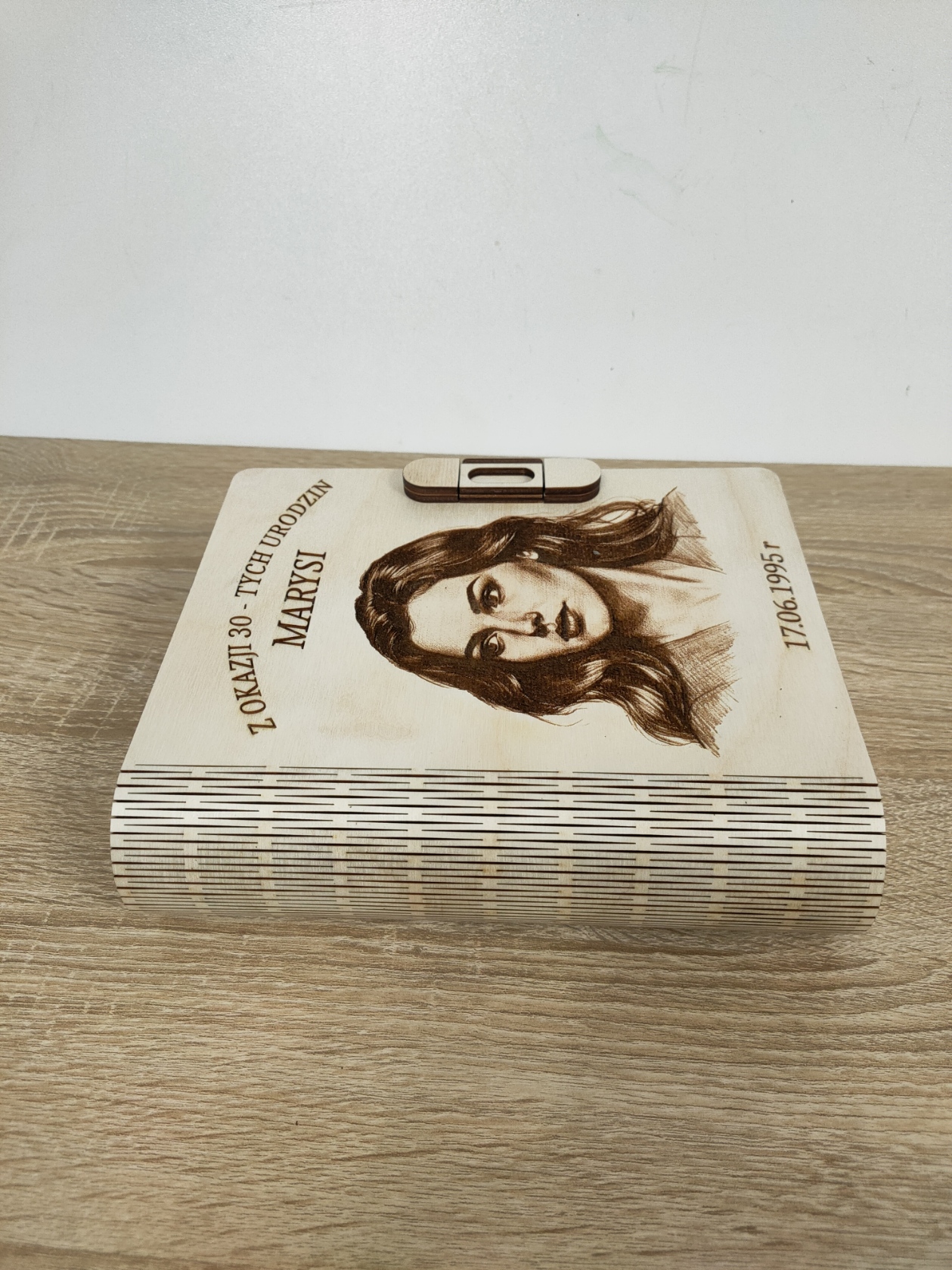 Ekskluzywna wypalana w drewnie książka z personalizowanym grawerem i portretem to niezwykły prezent, który zachwyci elegancją i indywidualnym charakterem. Ta wyjątkowa drewniana kasetka w formie książki idealnie sprawdzi się na urodziny, jubileusz, Złote Gody czy rocznicę ślubu.