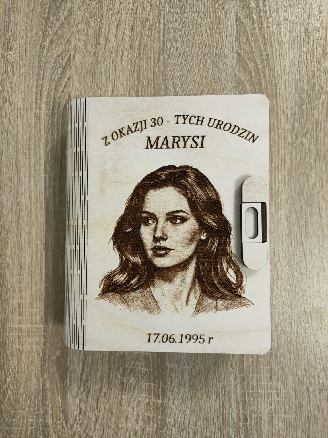 - Portret wypalany laserowo ze zdjęcia – pełen detali i realizmu.