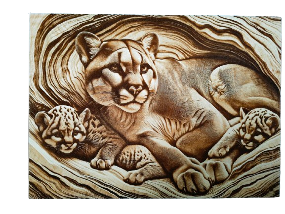 Puma – obraz wypalany w drewnie to połączenie dzikiej natury i artystycznej precyzji. Wprowadź do swojego domu elegancki akcent inspirowany potęgą przyrody i ciesz się niepowtarzalnym dziełem sztuki każdego dnia.