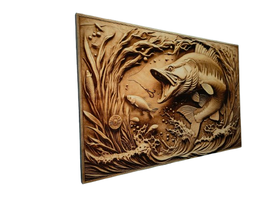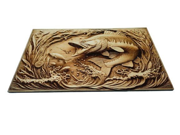 Obraz został wykonany na solidnej sklejce drewnianej o grubości 10 mm, zabezpieczonej bezbarwnym lakierem wodnym. Grawer laserowy oddaje każdy detal — od struktury łusek ryby po fakturę podwodnego dna. Realistyczne cieniowanie nadaje mu głębi i wyjątkowego charakteru, łącząc nowoczesność z naturalnym urokiem drewna.