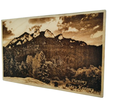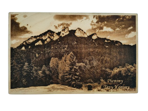 Obraz „Trzy Korony” wypalany laserowo w drewnie to wyjątkowa pamiątka z Pienin. Naturalna sklejka 1 cm i precyzyjne detale tworzą niepowtarzalną dekorację – idealny prezent dla miłośników gór.